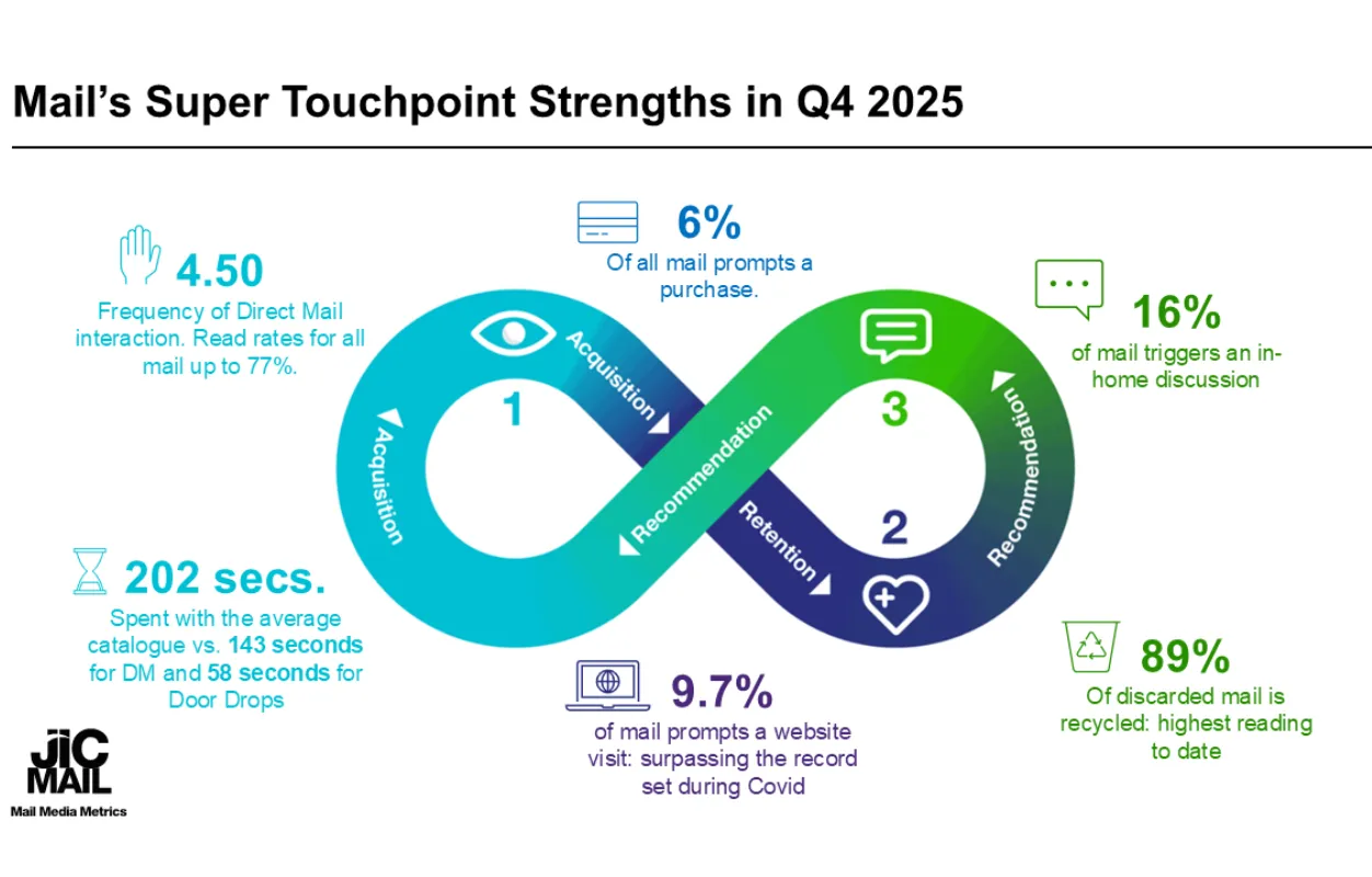 JICMAIL’s latest Q4 2025 data1 confirms something many marketers have felt but struggled to prove: mail is intrinsically connected to digital, making it even more powerful when used together.